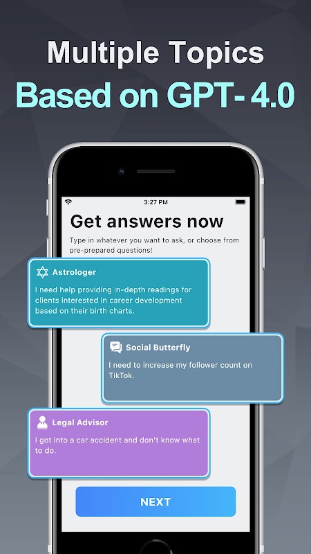 আপনার মোবাইল ডিভাইস থেকে AI এর সম্ভাব্যতা আবিষ্কার করুন এবং একটি বিনোদনমূলক এবং উত্তেজনাপূর্ণ পদ্ধতিতে যেকোনো প্রশ্নের উত্তর পান।