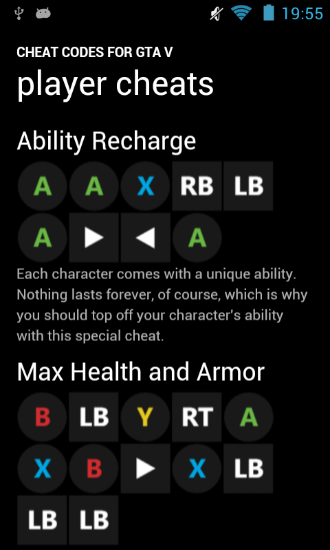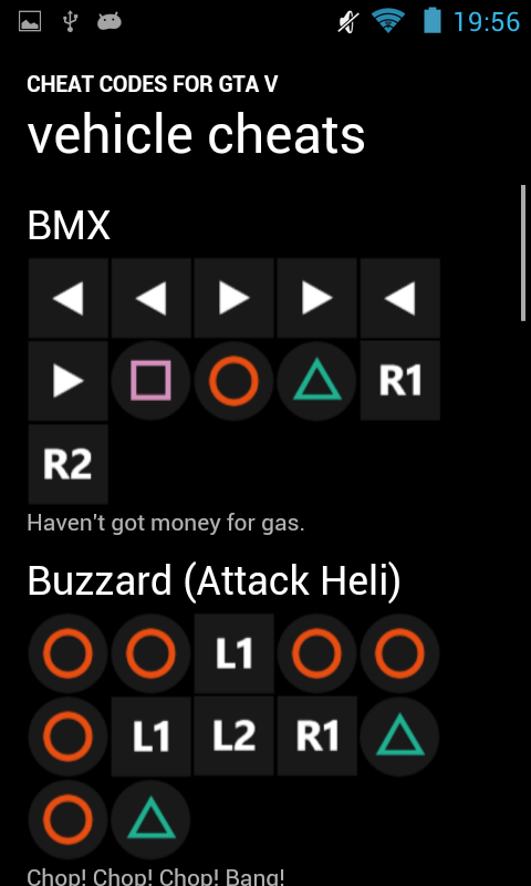 আবেদন গ্র্যান্ড থেফট অটো ভি জন্য ক্রমাগত আপডেট cheats এর একটি তালিকা রয়েছে