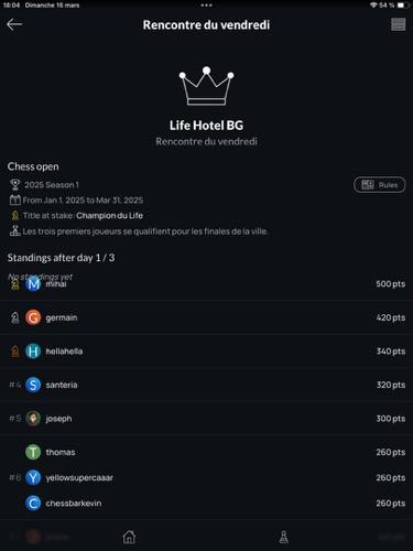 - মাত্র কয়েকটি ট্যাপে স্থানীয় দাবা টুর্নামেন্ট খুঁজে বের করুন এবং উষ্ণ, স্বাগতপূর্ণ স্থানে বিনামূল্যে অন্যান্য উত্সাহীদের বিরুদ্ধে খেলুন