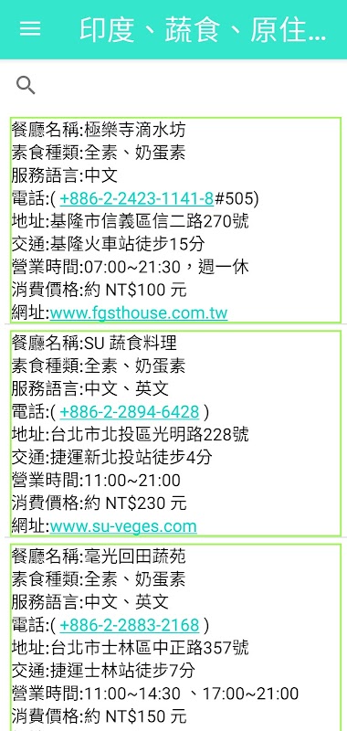 তাইওয়ানের সমস্ত ভারতীয়, নিরামিষ, আদিবাসী এবং সবুজ রেস্তোরাঁ।