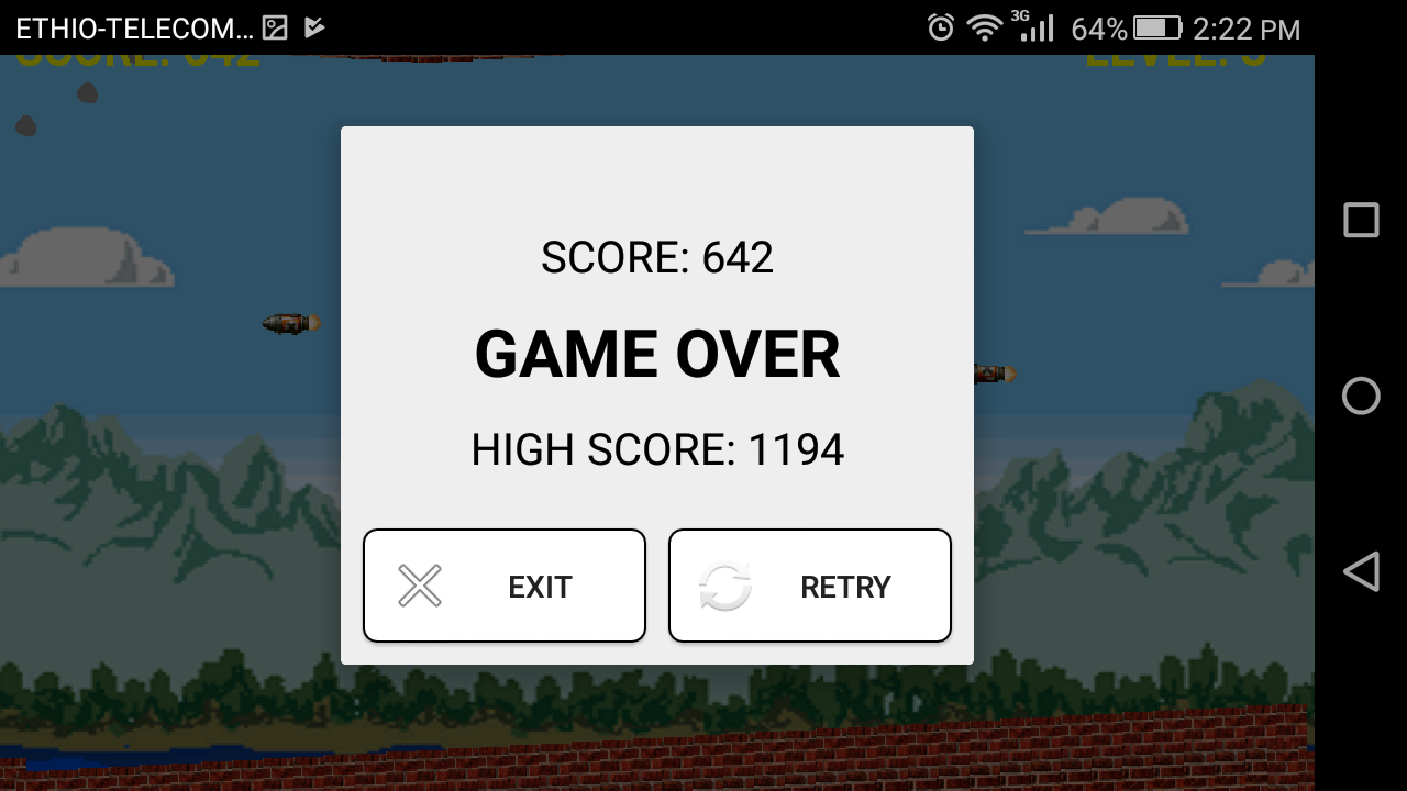 A 2D game with multiple blockers. The aim is to fly the chopper longer distance and look out for top and bottom blocks. Also look out for missiles fired at chopper.