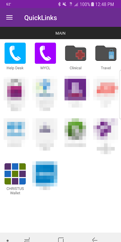 This mobile application allows for CHRISTUS Health to present employees with shortcut buttons that can either open a specified mobile application, phone number, or website. If the desired mobile application is not installed, a link to the Google Play store is presented to the user.