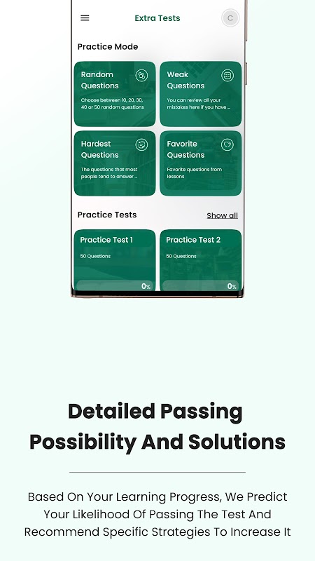• প্রতিবার নতুন প্রশ্ন: আপনাকে আপনার পায়ের আঙ্গুলের উপর রাখতে, আপনি প্রতিবার অনুশীলন পরীক্ষা পুনরায় শুরু করার সময় আমরা প্রশ্ন এবং উত্তরগুলিকে এলোমেলো করে দিই।