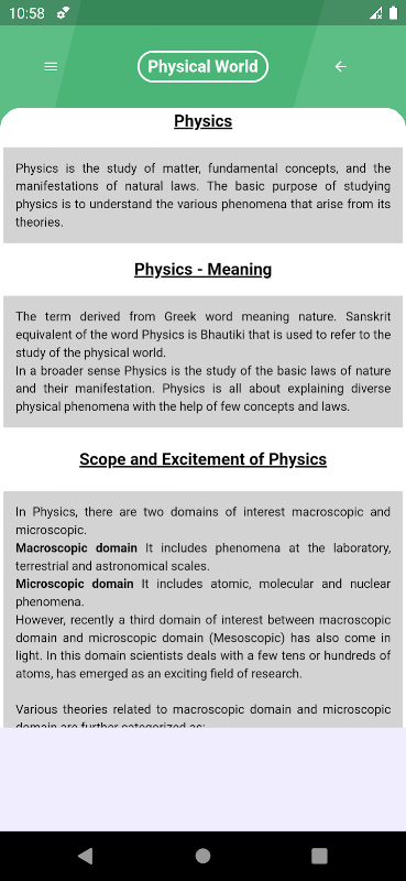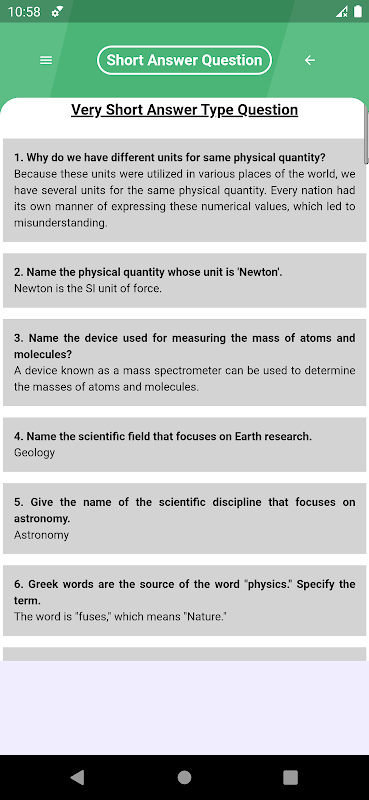 ক্লাস 11 ফিজিক্স নোটস হল তাদের ক্লাস 11 ফিজিক্স পরীক্ষার জন্য অধ্যয়নরত ছাত্রদের জন্য নিখুঁত অ্যাপ। অ্যাপটি ক্লাস 11 পদার্থবিদ্যার সমস্ত অধ্যায়ের জন্য ব্যাপক নোট প্রদান করে, সেইসাথে প্রশ্ন ও উত্তর অনুশীলন করে। নোটগুলি স্পষ্ট এবং সংক্ষিপ্ত ভাষায় লেখা এবং বোঝা সহজ। অ্যাপটিতে আপনার জ্ঞান পরীক্ষা করতে সাহায্য করার জন্য একটি কুইজ মোডও রয়েছে।