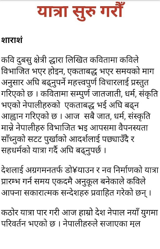 এই অ্যাপ্লিকেশনটিতে বিভিন্ন অধ্যায়গুলির সম্পূর্ণ নোট এবং 9 ম শ্রেণির নেপালি বিষয়গুলির প্রশ্নের সমাধান সংগ্রহ রয়েছে।