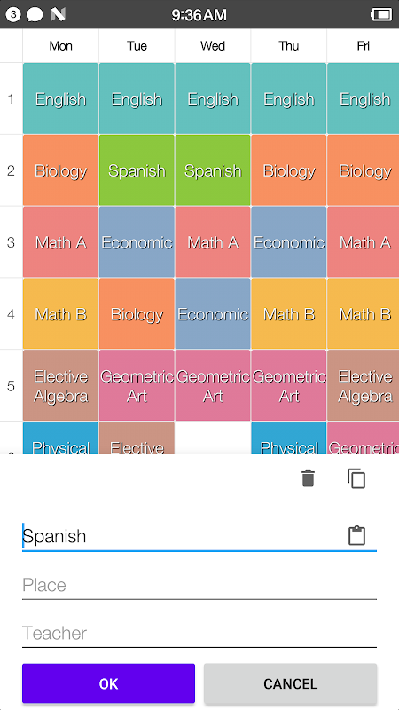 * বিভিন্ন কোর্সের জন্য বিভিন্ন রঙ স্বয়ংক্রিয়ভাবে কনফিগার করা হয়