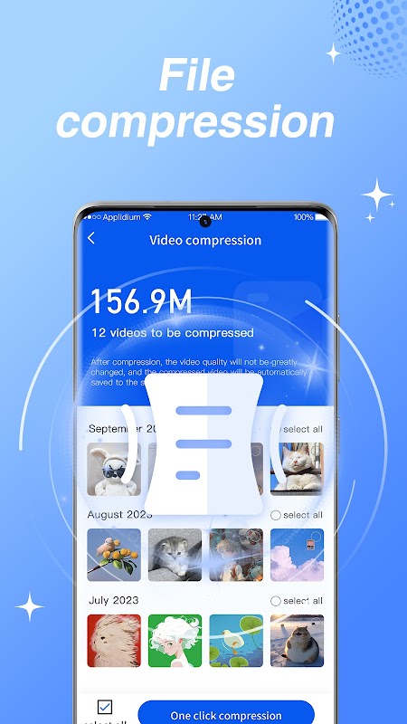 • কাস্টমাইজযোগ্য ফাইল কম্প্রেশন বিকল্পগুলির সাথে স্টোরেজ অপ্টিমাইজ করুন: নিম্ন, মাঝারি, উচ্চ বা আক্রমণাত্মক৷ অরিজিনালগুলি নিরাপদে ক্লাউড স্টোরেজে স্থানান্তরিত করা যেতে পারে।