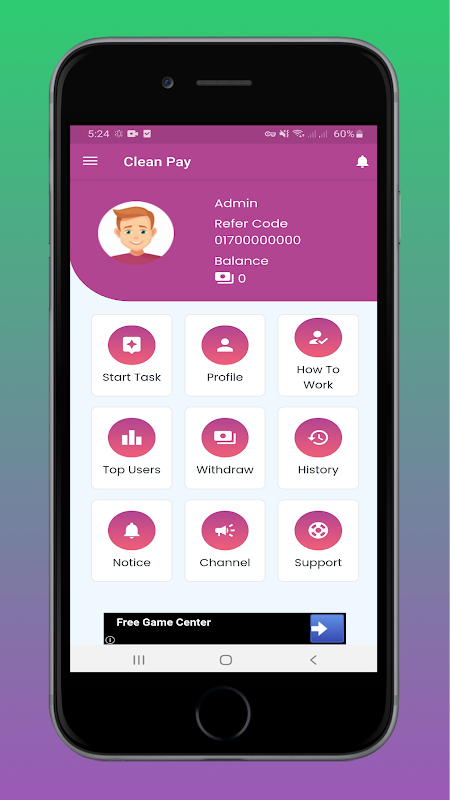 Clean Pay is very easy Quiz app in Bangladesh. At first you download this app. Then you open this app and see a log in interface. You click sign up button and create a new account using by your phone number. Then you back this page and log in your account. You can see the main interface in this app. Then you click the start task and next button press. Then you see many other quiz. Every time click next button and see different quiz.