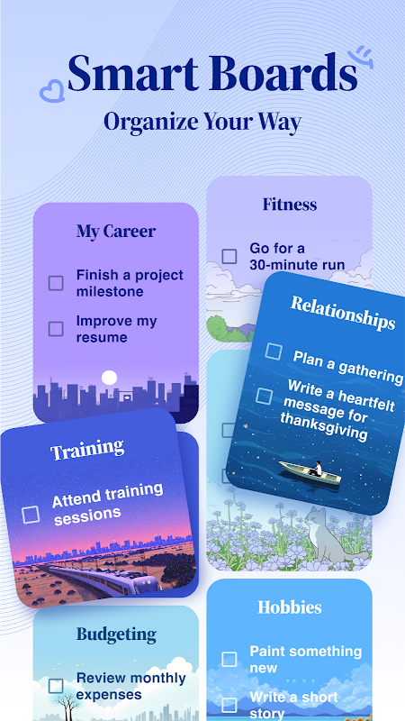 🗂 কাস্টমাইজযোগ্য টাস্ক বোর্ড আপনার জীবনের বিভিন্ন ক্ষেত্রের জন্য বোর্ড তৈরি করুন। বোর্ডের থিম কাস্টমাইজ করুন এবং বিভিন্ন বিষয়ের নাম সেট করুন।