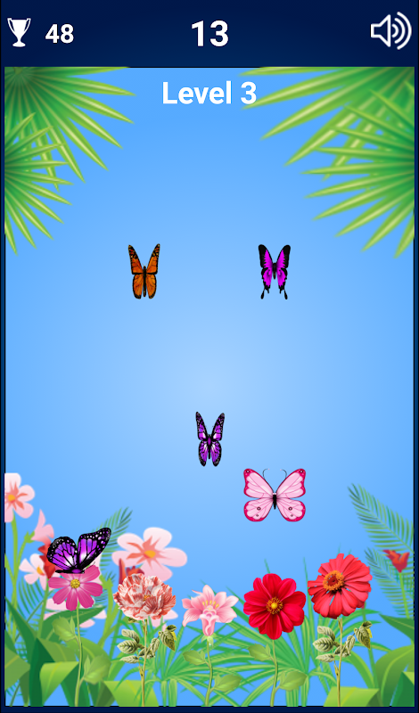 The rules of the game are simple and intuitive. Butterflies fly over flowers. Click on a flying butterfly to plant it on a flower. If you do not hit it, instead of one butterfly there will be two. The goal of the game is to plant all the butterflies on flowers.