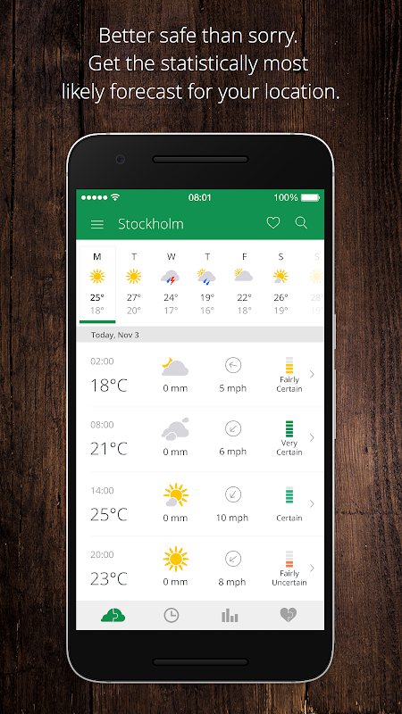• Better safe than sorry. Get the statistically most likely forecast for your location.