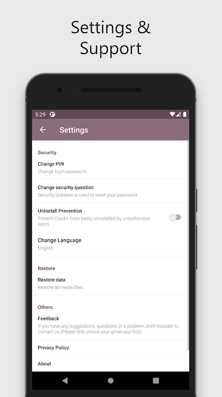 - ক্লক ভল্ট, আপনার ফোন হারিয়ে গেলে বা ক্ষতিগ্রস্থ হলেও আপনার ফাইল নিরাপদ তা নিশ্চিত করে আপনার ব্যক্তিগত ফাইলগুলিকে সুরক্ষিত করা সহজ করে তোলে৷