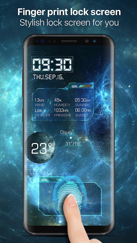"🔒This lock screen offers lock screen app for Android phone with stylish live wallpaper screen lock themes, and 150+ digital clock .🔒