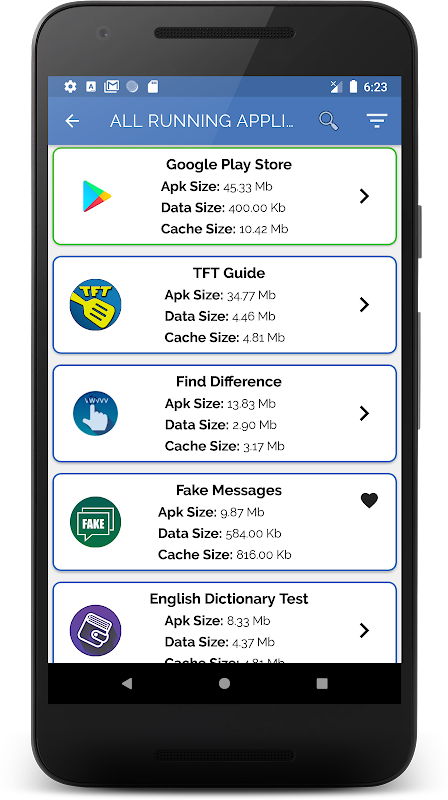 - আপনি অ্যাপ্লিকেশনগুলির ক্যাশে আকার দেখতে পাবেন।