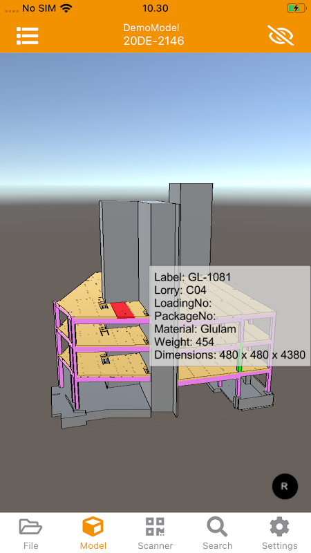 Scan the QR code in the label of an element and instantly see its location in the 3D model of a building. Tap and select any element to see the description showing dimensions, weight and loading information. The app is compatible with CLT, LVL and glulam elements.