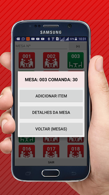 Aplicativo permite gerenciar comandas de mesas por parte dos garçons, recursos:
