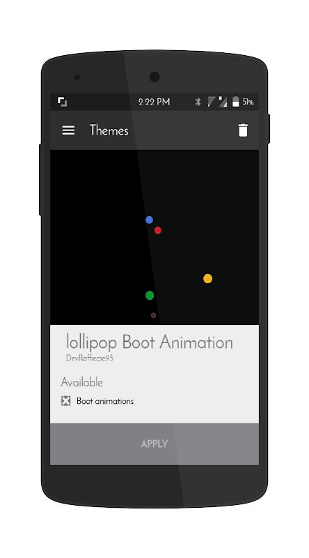 Simple and clean Android 5.1 lollipop inspired boot animation made for the Cyanogenmod Theme engine.