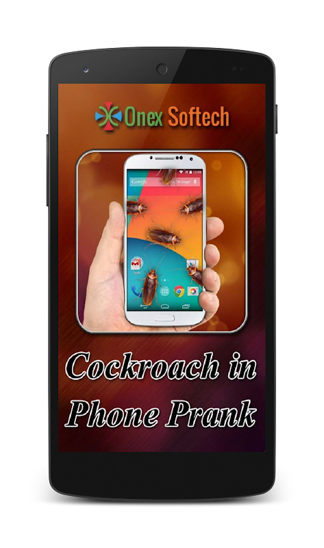 Cockroach in Phone prank display Cockroaches on top of the phone screen. High quality and fluency of animation of the cockroaches will let you trick your friends in easy way. They will think that a real cockroaches moves on screen of their phones. You will have a great fun of them.
