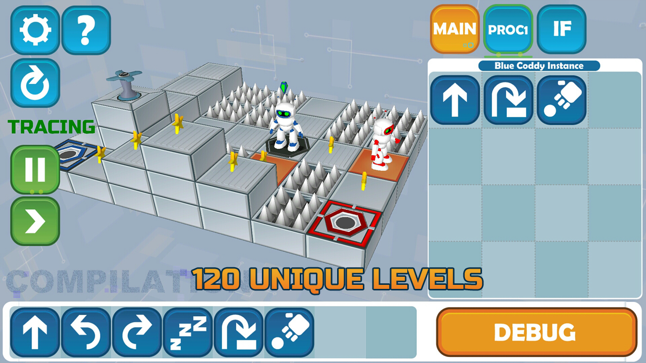 Challenge your logic in 120 unique levels in wich you must help Coddy the bot, to collect all stars and reach the exit!