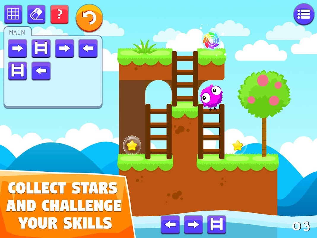 কোডিংয়ে আকর্ষণীয় প্রথম পদক্ষেপ গ্রহণ করুন এবং অরোরার জগতের প্রতিচ্ছবি তৈরি করুন - একদম পছন্দসই ফজবল যা ঘরে ফিরে আসতে আপনার সহায়তা প্রয়োজন। আপনার মস্তিষ্ককে প্রশিক্ষণ দিন এবং কেবল প্রোগ্রামিং কমান্ড ব্যবহার করে কৌশলগত স্থান ধাঁধা সমাধান করুন। অরোরাকে আকর্ষণীয় রঙিন স্তরের মাধ্যমে গাইড করুন যার মধ্যে প্রতিটি আরও বেশি যৌক্তিক চ্যালেঞ্জ উপস্থাপন করছে। ফ্লাইং প্ল্যাটফর্ম, অস্থাবর সেতু, মই এবং পোর্টালগুলির মতো বিভিন্ন ধাঁধা উপাদানগুলি ধীরে ধীরে প্রোগ্রামিংটিকে আরও মজাদার করে প্রবর্তন করা হয়। গেমের সুন্দর গ্রাফিক্স, শব্দ এবং হাস্যকর বার্তা বাচ্চাদের শেখার প্রক্রিয়াটিতে ফোকাস রাখে।