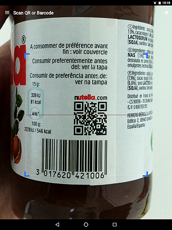 Scan any QR code or barcode to get additional information including results from popular online services; Amazon, eBay, and Google