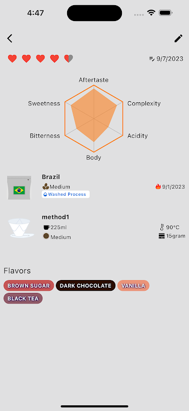 টেস্টিং নোট যেমন ব্রিউং টাইমার, রোস্টিং ডেট, স্বাদের তালিকা, স্বাদ ইত্যাদি
