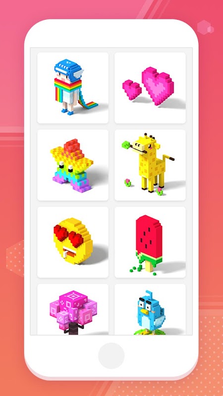 আপনার জন্য নতুন রং অভিজ্ঞতা! ফ্রি 3D PixelColor 2D রং বই 3D সক্রিয়! সোয়াইপ, ড্র্যাগ এবং আলতো চাপুন, এবং আপনি আপনার নিজস্ব 3D শিল্পকর্ম হিসাবে তৈরি করতে পারেন! 3D PixelColor ছবি প্রচুর এবং আপনি তাদের সব বিনামূল্যে পাওয়া যাচ্ছে একটি সুযোগ আছে!