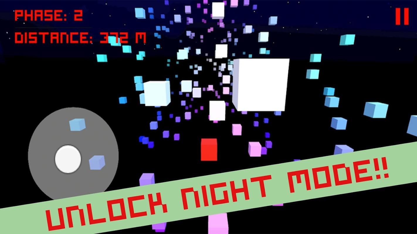 Navigate your cube through a field of blocks whose colors are determined by your distance from them.