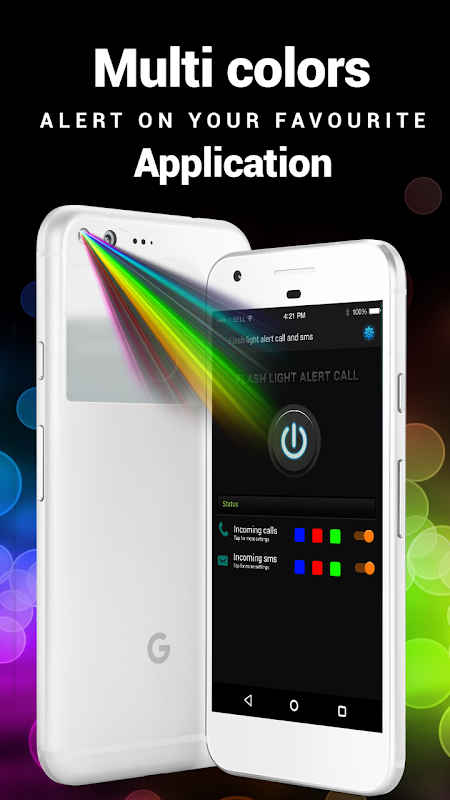 Bright Free Flash on call and SMS alerts application Automatic Flashlight alert Blink Torch LED colorful Ultimate Flash Light color for text message alert with a colored Camera lights alert for Facebook, messenger, gmail notification and any other app. Brightest LED phone flash, color flashlight alerts app to get all notifications with automatic flash alerts for all apps with blinking color flash lights.