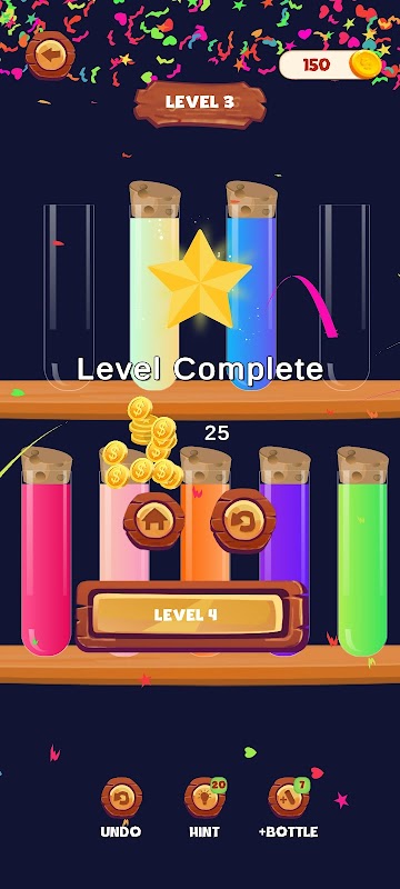 * প্রথমে আপনি বাছাই করা গেমের স্তর আবার পুনরায় চালু করতে পারেন এবং আবার অন্তহীন বোতল ভর্তি চ্যালেঞ্জ সম্পূর্ণ করার চেষ্টা করতে পারেন। আপনার তরল সাজানোর ধাঁধা সহজ করতে আপনি আরও বোতল যোগ করতে পারেন।