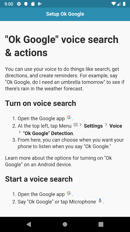 Commands for Ok Google APK Information