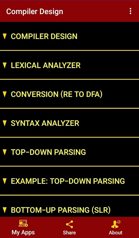 সংকলক বাস্তবায়নের তত্ত্ব এবং অনুশীলন বুঝতে এই টিউটোরিয়াল অ্যাপটি খুব কার্যকর। এই টিউটোরিয়ালে সংক্ষিপ্ত বিশ্লেষণ, সিনট্যাক্স বিশ্লেষণ, শব্দার্থবিজ্ঞান বিশ্লেষণ, অন্তর্বর্তী কোড উত্পন্নকরণ, কোড অপ্টিমাইজেশন এবং কোড জেনারেশন হিসাবে সংকলক নকশার তত্ত্ব অন্তর্ভুক্ত রয়েছে। সমস্ত পর্যায়ের বিবরণ উপস্থাপনের ফর্মটিতে দেওয়া হয়।