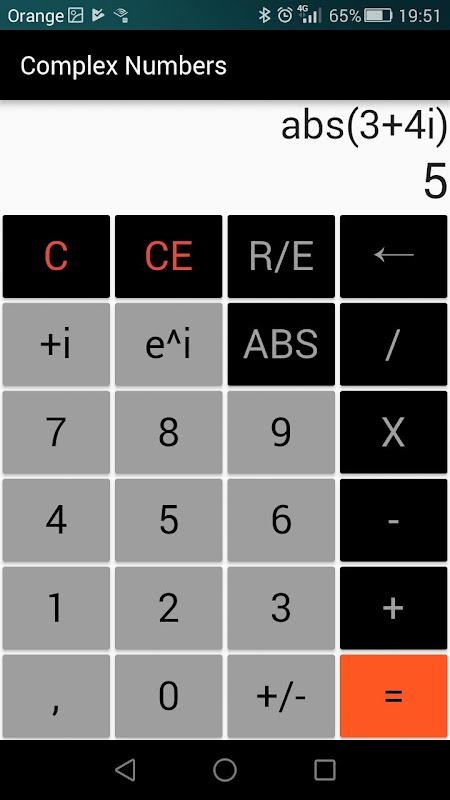 This calculator focuses on speed and ease of use and provides all basic operations with complex numbers. Its user interface is designed to be usable as a standard pocket calculator.