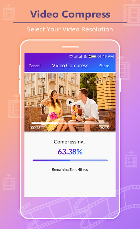ভিডিও কম্প্রেসার অ্যাপ্লিকেশনটি সহজ পদক্ষেপ সহ আউটপুটে মেমরি আকারে ভিডিও সংকোচন করে এবং আপনার ফোনে ফাইল সংরক্ষণ করে।