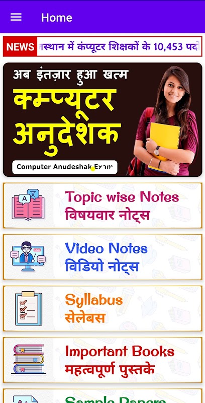কম্পিউটার অনুদেশক অ্যাপের মাধ্যমে, আপনি হিন্দি এবং ইংরেজি উভয় মাধ্যমেই সিলেবাস অনুযায়ী সমস্ত নোট এবং অধ্যয়নের উপকরণ খুঁজে পেতে পারেন।