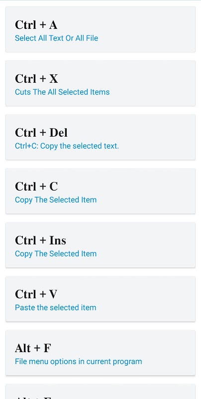 আমরা যখন অ্যাপ ডেভেলপারের কথা শুনি, আমরা অ্যাপের ইন্টারফেসের স্ক্রিনশট দেখি, কম্পিউটার হার্ডওয়্যার, সফ্টওয়্যার এবং পরিভাষা সম্পর্কে একাধিক পছন্দের প্রশ্ন সহ একটি কুইজ বিভাগ সহ। আমরা Microsoft Word, Excel, এবং এর মত জনপ্রিয় অ্যাপ্লিকেশনগুলির জন্য কীবোর্ড শর্টকাটগুলির জন্য উত্সর্গীকৃত একটি বিভাগও দেখতে পাই৷
