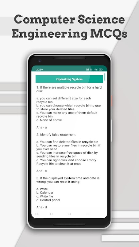This application contains multiple choice questions of all important topics of Computer Science Engineering Chapterwise. This is very helpful for preparation of competition exam and College study.