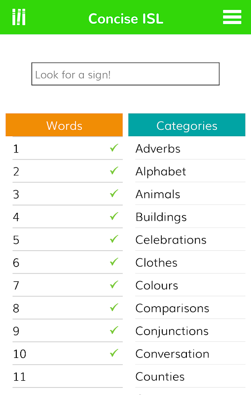 কনসাইজ আইএসএল একটি আইরিশ সাইন ভাষা (আইএসএল) ভিডিও অভিধান যা প্রায় 1000 টি লক্ষণ রয়েছে।