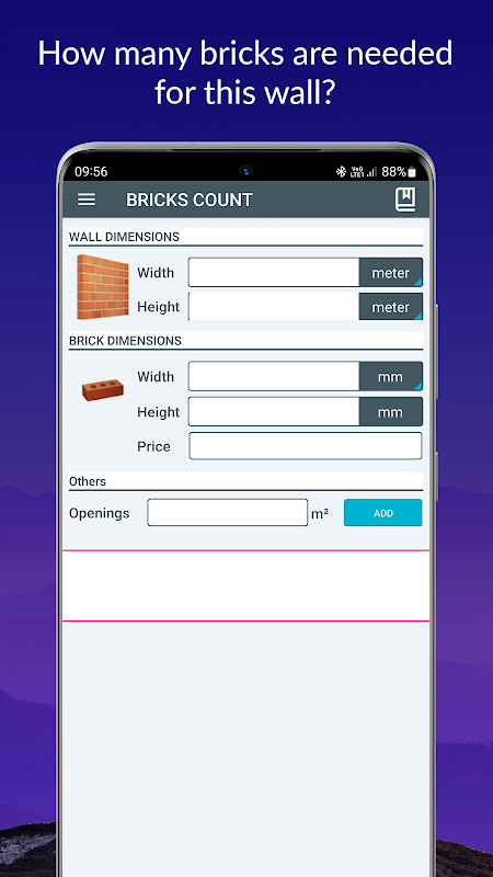 -ক্যালকুলেট ব্লক (ইট) অঞ্চল অনুযায়ী প্রাচীর তৈরি করার জন্য প্রয়োজনীয় গণনা।