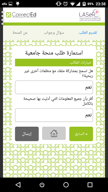 এই অ্যাপ্লিকেশানটি লেবানন শিক্ষার্থীদের একটি ঋণ বা বিশ্ববিদ্যালয় গবেষণার জন্য বৃত্তি জন্য আবেদন করতে একটি পোর্টাল।