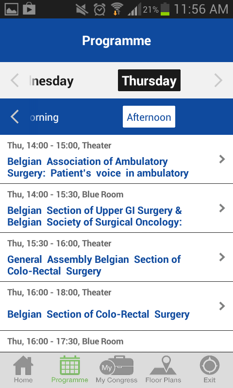You can browse the program by day or by topic, and even by author, speaker or session chair. Marking presentations and sessions you would like to attend adds them to your personal program, which is a great way to be efficient at the conference and spend time talking to people and listening to talks rather than paging through the big printed conference program. The ConPass app is also a great way to collect everything you like, such as people you meet, exhibitors you would like to see, your favorite topics and the notes and tags you have added to presentations and sessions. You can share them with your colleagues and the outside world through Twitter, Facebook and e-mail. Additionally, the interactive floor plan always tells you exactly where you need to go next.