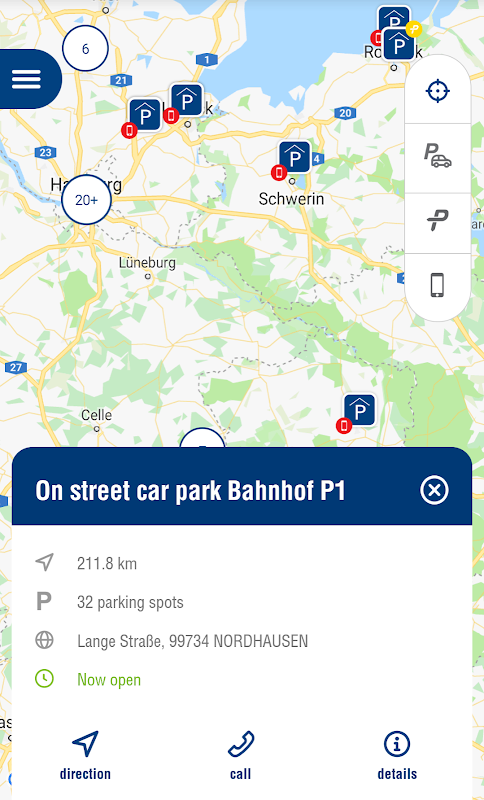 • আপনার এলাকার কনটিপার্ক এবং ইন্টারপার্কিং গাড়ী পার্ক, মাল্টি-স্টোর গাড়ি পার্ক বা ভূগর্ভস্থ গাড়ি পার্ক প্রদর্শন করুন।