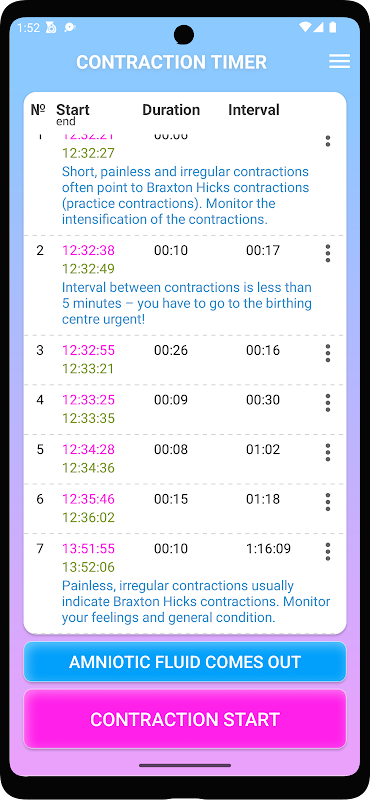 যদি প্রসবের সাথে সংকোচন শুরু হয় তবে অ্যাপটি হাসপাতালে যাওয়ার প্রয়োজনীয়তা সম্পর্কে অবহিত করবে।