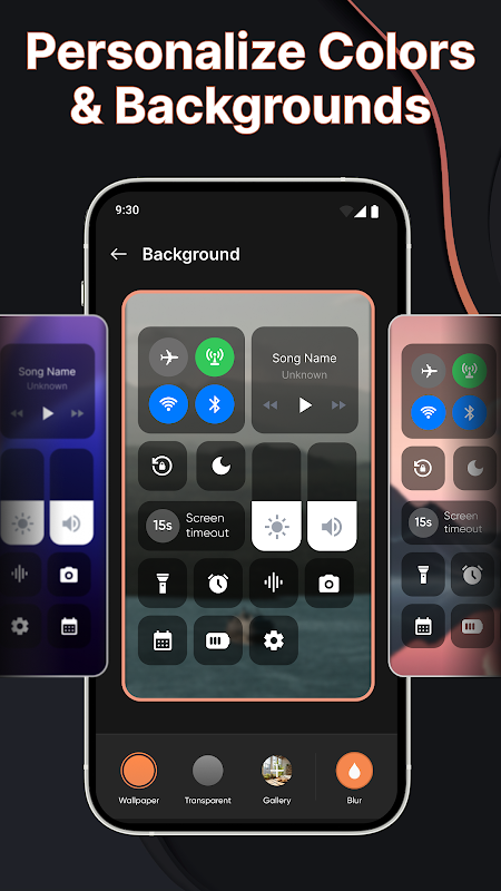- আপনার শৈলীর সাথে মানানসই একটি চেহারা তৈরি করতে ওয়ালপেপার, স্বচ্ছতা এবং ঝাপসা প্রভাবগুলির সাথে আপনার নিয়ন্ত্রণ কেন্দ্রের পটভূমি কাস্টমাইজ করুন।