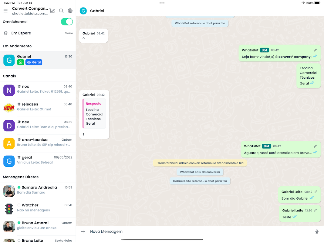 কনভার্ট চ্যাট হল একটি কনভার্ট কোম্পানির পণ্য, ওমনিচ্যানেল লাইসেন্সধারী গ্রাহকদের জন্য একচেটিয়া, এতে কর্পোরেট চ্যাট, গ্রুপ, টিম এবং টিম, ফেভারিট, WhatsApp বিজনেস API এর মাধ্যমে পরিষেবা, যোগাযোগ নিবন্ধন, টেমপ্লেট পাঠানো, চ্যাটের ইতিহাস ইত্যাদি রয়েছে।