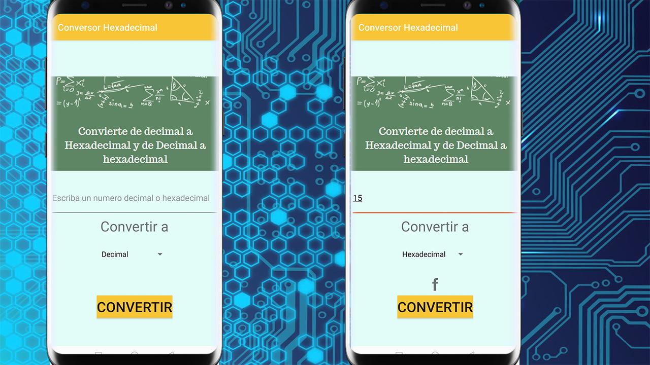 Aplicación simple para convertir un numero decimal a hexadecimal y también, hexadecimal a decimal sin necesidad de internet.