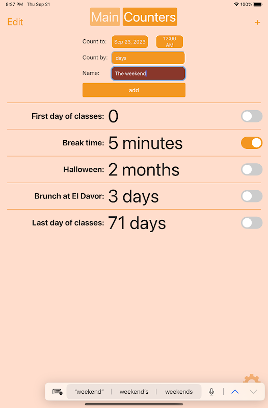 যে কোনো তারিখ থেকে দিন, ঘন্টা, মিনিট, বছর এবং মাস গণনা করুন। কাউন্টডাউনের একটি তালিকা সংরক্ষণ করুন এবং মূল পৃষ্ঠার জন্য একটি সেট করুন।