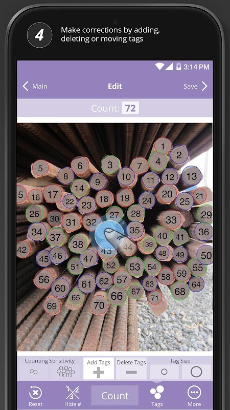Count stacks of solid-face bars, rebars and rods quickly from your mobile device