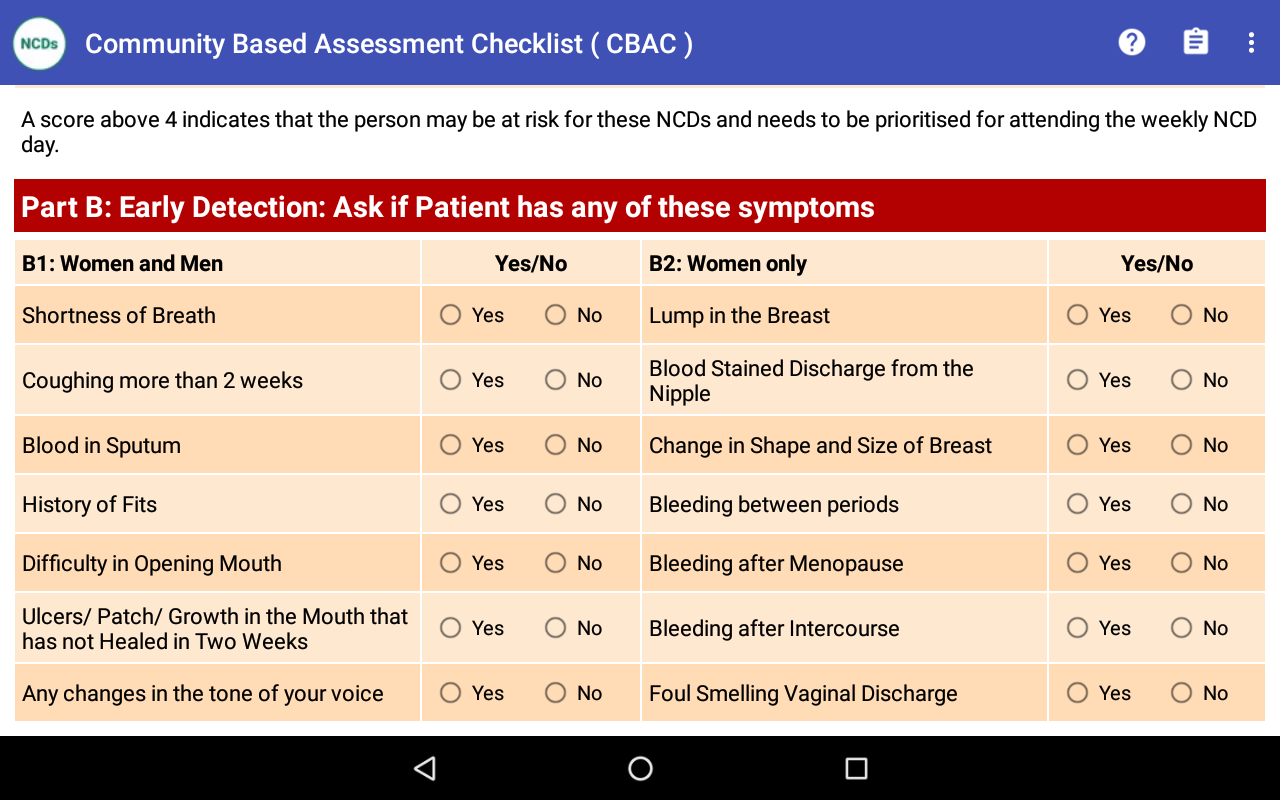 স্বাস্থ্য কর্মী একটি পৃথক তালিকাভুক্ত করতে এবং তাদের 5 টি এনসিডির জন্য স্ক্রিন করতে।