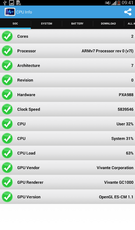 Show all information of phone and tablet ex: CPU speed, Ram available...